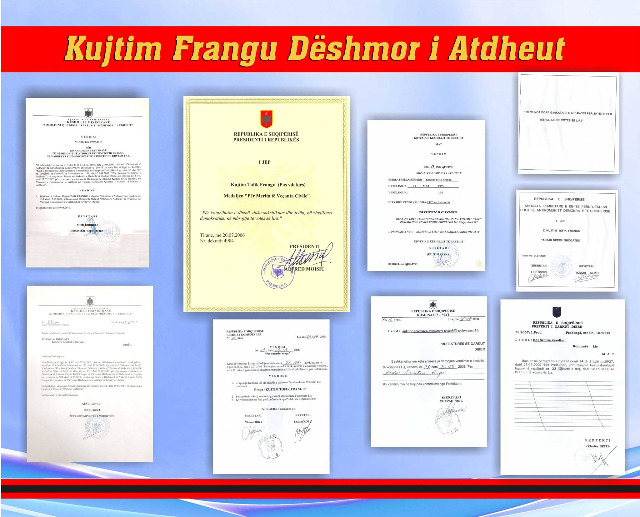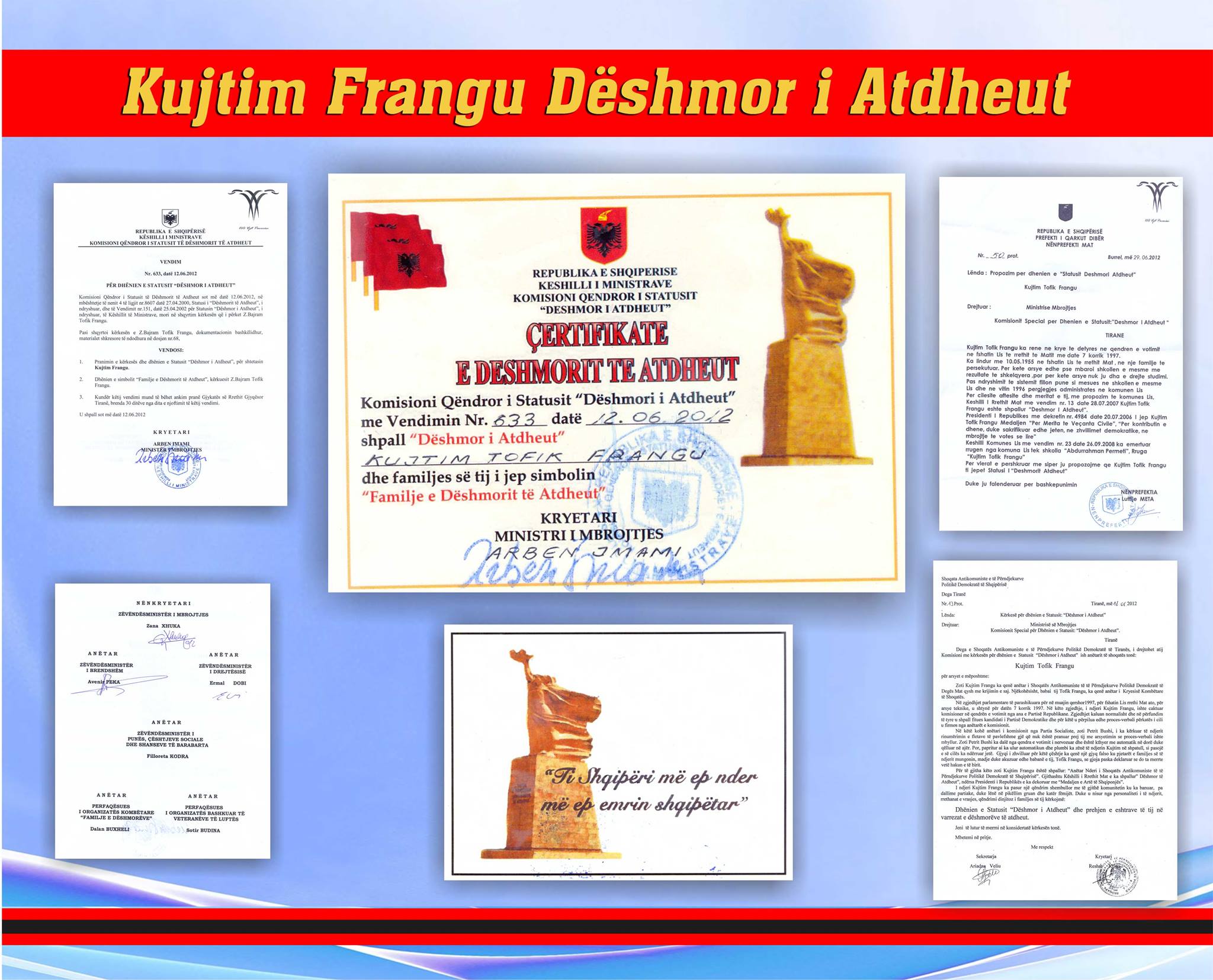 Homazhet e 20-vjetorit të rënies së Dëshmorit të Atdheut, Kujtim Frangu